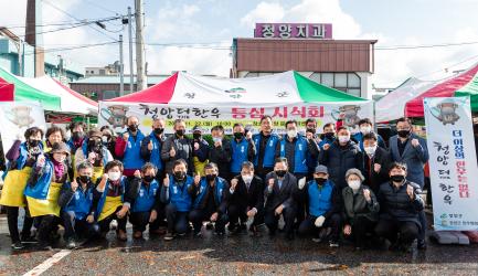 이날 청양군지부는 청양장을 찾은 소비자들에게 등심 100kg(880만 원 상당)을 제공하면서 선호도를 파악했다.