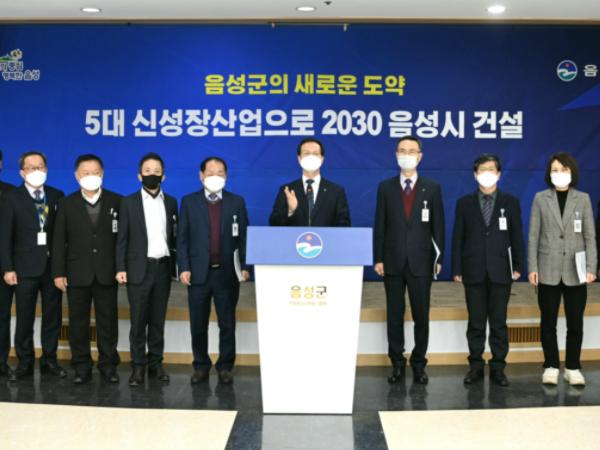 음성군은 23일 대회의실에서 언론 브리핑을 개최해 음성군 미래를 바꿀 핵심전략이자 지속가능한 미래먹거리 선점을 위한 5대 신성장동력산업 분야별 추진 로드맵을 발표했다.