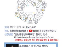 강연은 유튜브 채널 「홍천군 평생학습 TV」에서 실시간 스트리밍을 통해 온라인과 병행할 예정이다.