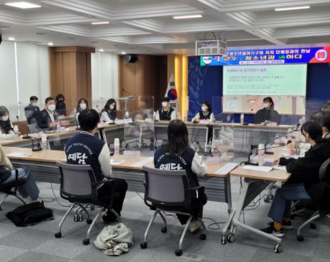 이날 행사에는 청소년 기관(청소년수련관, 청소년미래센터)에 소속된 3개의 청소년참여기구(청소년참여위원회 1개, 청소년운영위원회 2개)가 참여해 황선봉 군수와 정책 간담회를 진행했다.