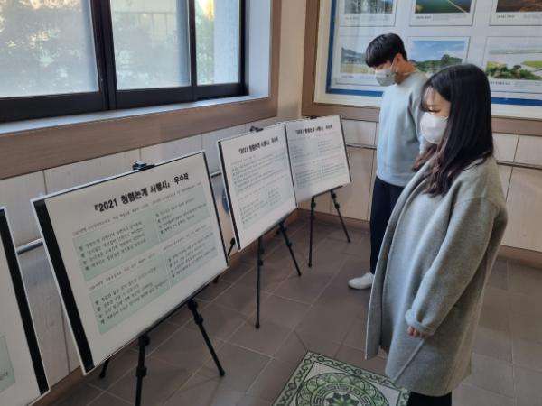 공모전에 선정된 우수작품들은 교직원뿐 아니라 외부 학생들이 자주 오고 가는 중앙 로비에 전시됐다.