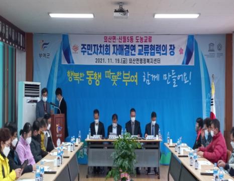 충남 부여군 외산면 주민자치회는 지난 19일 서울시 양천구 신월5동 주민자치회와 외산면행정복지센터에서 도농교류를 위한 자매결연을 체결했다.