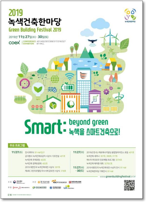 국토교통부가 주최하고 한국감정원 등이 주관하는‘2019 녹색건축한마당’이 오는 27일부터 30일까지 서울 삼성동 코엑스에서 개최된다.