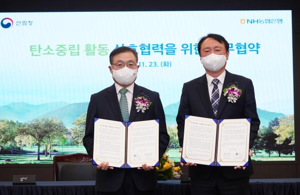 협약식에는 최병암 산림청장과 권준학 농협은행장이 기관 대표로 참석했으며, 기후위기 대응 및 탄소중립 목표 달성 수단으로서 산림의 중요성에 대해 공감한 가운데,