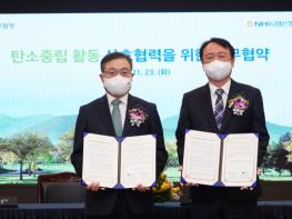 산림청은 농협은행과 23일 서울 중구 농협은행 본사에서 산림분야 탄소중립 및 세계산림총회 개최 협력을 위한 업무협약을 체결했다.