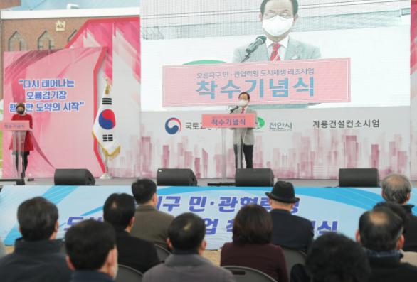 천안시는 23일 각종 체육시설과 공동주택 등이 들어설 원성동 일원 옛 오룡경기장에서 오룡지구 민·관협력형 도시재생리츠사업 착수 기념식을 열었다고 밝혔다.