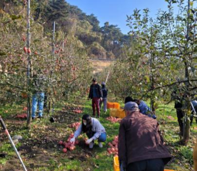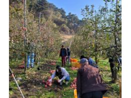 일손을 지원받은 농가주는 “일손이 없어 사과수확에 걱정이 많았는데 이렇헤 직원들이 도움을 줘서 적기에 수확할 수 있어 정말 감사하다”고 말했다.