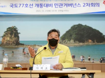 군은 지난 23일 안면읍사무소에서 가세로 군수와 도·군의원, 군 정책자문단 및 충남연구원 관계자, 지역 주민 등 50여 명이 참석한 가운데 ‘국도77호선 개통 대비 민·관 거버넌스 2차 회의’를 개최했다고 밝혔다.