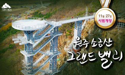 소금산 출렁다리 및 나오라쇼로 원주의 대표 관광지로 자리잡은 간현관광지의 새로운 코스인 '소금산 그랜드밸리'가 11월 27일 시범개장한다.