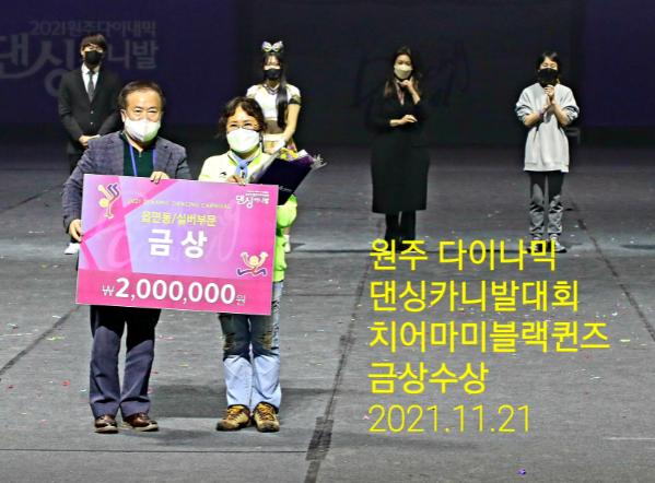 삼척 ‘치어마미 블랙퀸즈팀’이 ‘2021년 원주 다이나믹 댄싱 카니발대회’에서 읍면동/ 실버부문에서 금상을 수상하는 영예를 안았다.