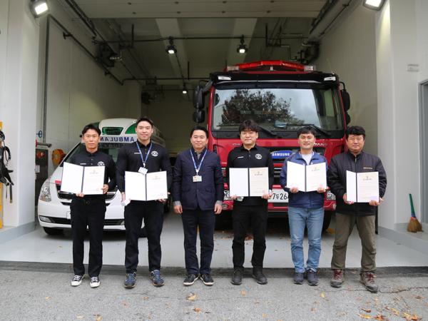 황정기 씨는 “평소 받아 온 소방서와 회사의 응급처치 교육에서 심정지 환자에게는 끊임없는 가슴압박이 가장 중요하다고 배웠다”라며 “쓰러진 동료를 보고 두려웠지만, 살려야 한다는 마음으로 가슴을 압박했다”고 말했다.