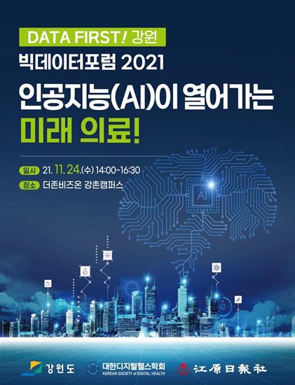 강원도는 11월 24일 오후 2시부터 더존비즈온 강촌캠퍼스에서“인공지능(AI)이 열어가는 미래의료!”라는 주제로「DATA FIRST! 강원」빅데이터 포럼 2021을 개최한다.