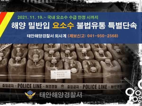 태안해양경찰서는 국내 요소수 수급 안정 시까지 해양 밀반입 등 요소수 관련 범죄 단속활동을 집중 강화한다.