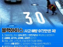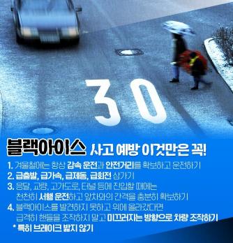 유병찬 대응예방과장은 “숙련된 운전자라 할지라도 빙판길 제동거리는 평소보다 2~3배 늘어나기 때문에 안전거리를 항상 확보하고 서행하는 등 각별한 주의를 기울여 교통사고를 예방하길 바란다.”고 당부했다.