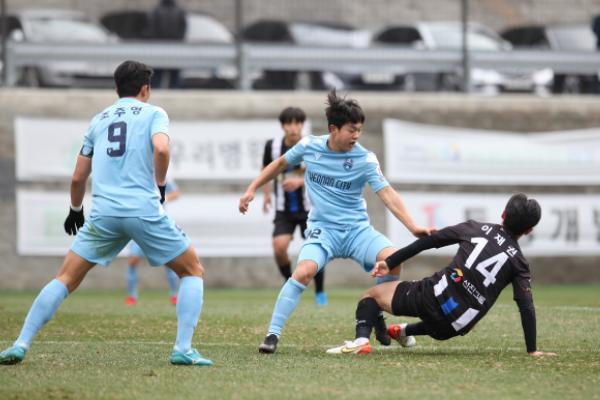 이후 김포의 패스 미스를 놓치지 않고 역습 기회를 잡아 이예찬이 침투해 들어갔지만, 김포의 골망을 흔들진 못했다.