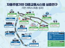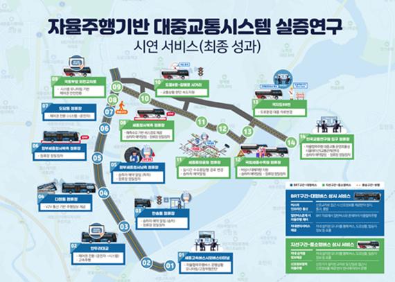 국토교통부는 11월 25일 세종시 일대에서 지난 4년간 진행해 온 자율주행 기반 대중교통시스템 기술개발에 대한 최종 성과시연회를 개최하였다고 밝혔다.