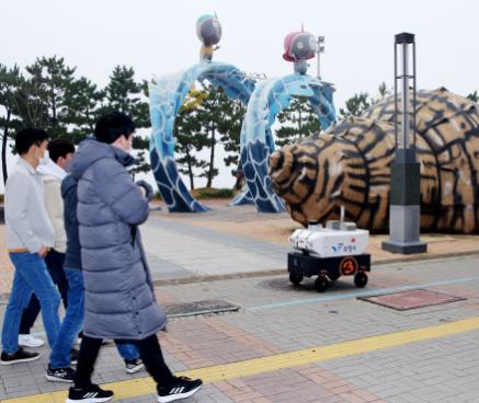 이를 위해 시는 지난 20일과 21일 2일간 대천해수욕장 머드광장, 만남의광장 등 4개 광장에서 코로나19 예방을 위한 GPS기반 인공지능 방역 로봇을 시범 운영했다.
