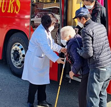 접종을 완료한 한 어르신은“거리가 멀고 예약도 힘들어 자녀가 도와주지 않으면 추가접종을 할 생각을 못 했다. 그런데 군에서 접종예약 및 접종센터까지 버스로 이동시켜줘 편하게 할 수 있었다. 또 접종 후 귀가 버스에 의료 인력도 동행하여 집에 도착할 때까지 든든했다”라며 고마움을 표했다.