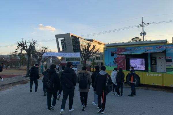 태안소방서는 태안 관내 청소년을 대상으로 이동안전체험차량을 이용한 비대면 소방안전교육을 실시한다.