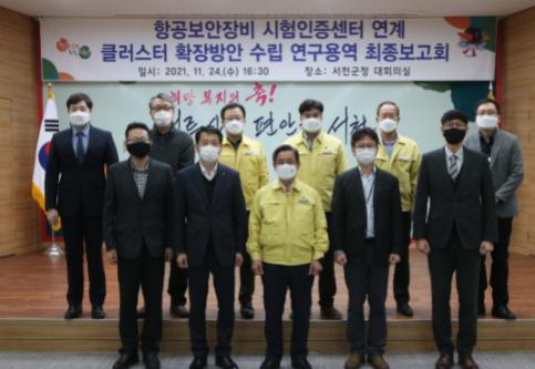 서천군이 지난 24일 군청 대회의실에서 ‘항공보안장비 시험인증센터 연계 클러스터 확장 방안 수립 연구용역 최종보고회’를 개최하고 국가보안검색산업 클러스터 조성에 나섰다.
