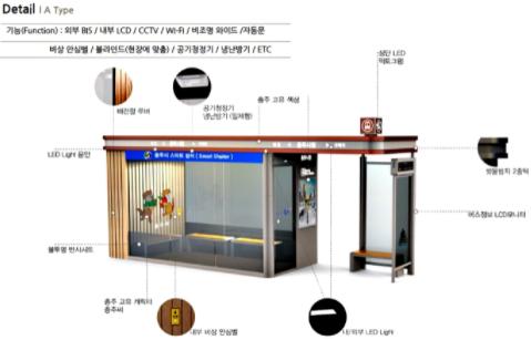 스마트 버스정류장은 냉?난방기기, UV 공기살균기, 온열 의자, 공공와이파이, 휴대폰 유?무선충전기, 자동블라인드, CCTV, 비상벨, 이상 음원 감지기 등 각종 편의시설이 구비돼 시민들이 쾌적하고 편리한 환경에서 버스를 기다릴 수 있다.