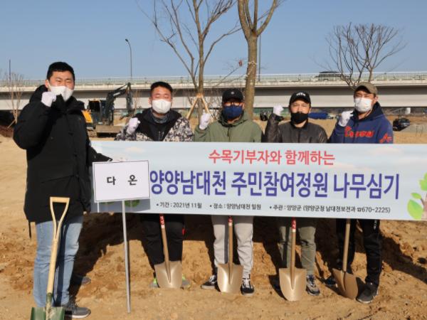 양양군이 남대천 르네상스 사업의 일환으로 남대천 일대에 조성하는 주민참여정원 나무심기 행사를 지난 24일부터 26일까지 3일간 진행했다.