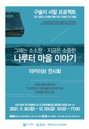 아카이브 전시회는 11월 30일부터 12월 3일까지 진리탐구 마을연구소(희망로 44-11)에서 진행되며, 구술이 서말 프로젝트를 통해 개발된 마을상품(6종)과 옛 사진, 일러스트, 영상 등이 전시될 예정이다.