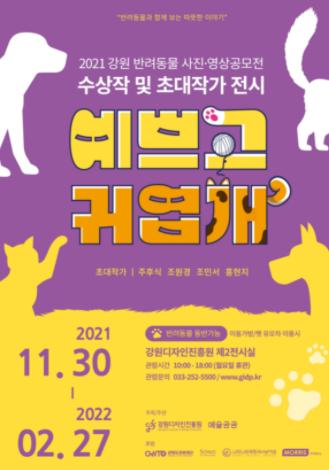 강원디자인진흥원과 예술공공이 공동 주최·주관으로 “예쁘고 귀엽개展”이 오는 11월 30일부터 2022년 2월 27일까지 진흥원 제2전시실에서 열린다.