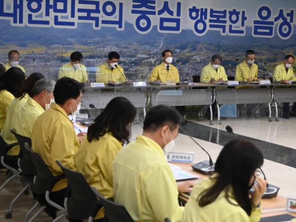 음성군은 29일 군청 대회의실에서 조병옥 음성군수를 비록한 부서장급 이상 간부들이 참석한 가운데 월간업무회의를 개최하고 코로나19 종합상황 및 월간업무 등을 논의하고 공유했다.