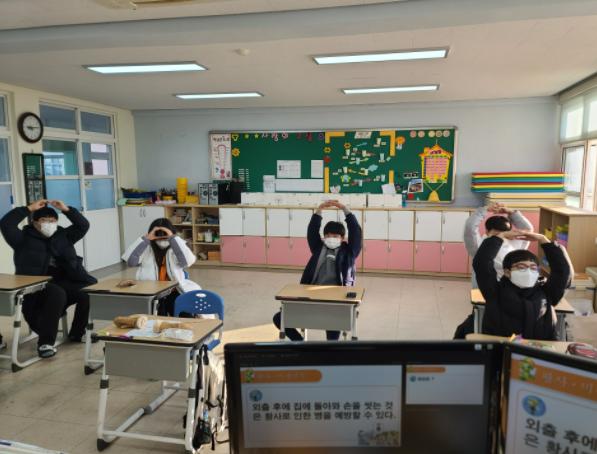 방포초등학교는 23일부터 26일까지 유치원아 및 초등학생, 전교직원을 대상으로 2021 재난 대응 안전한국훈련을 실시했다.