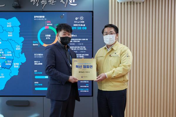 아산시는 26일 청년취업 컨설팅 ‘스파르타’가 2021 행정안전부 주관 주민생활 혁신사례에 선정돼 ‘혁신 챔피언’ 인증패를 수상했다고 밝혔다.
