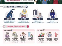 전북도 관계자는 “한랭질환은 예방이 가능하므로 겨울철 한파특보 등 기상예보를 수시로 확인하여 내복, 장갑, 목도리, 모자 등으로 몸을 따뜻하게 하는 등 한랭질환 건강수칙을 준수해야 한다”라고 당부했다.