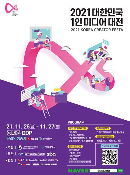 과학기술정보통신부는 1인 미디어 산업의 활성화를 위한 국내 대표 미디어산업 박람회인 ?2021 대한민국 1인 미디어 대전?을 11월 26일~27일 이틀간 개최한다.