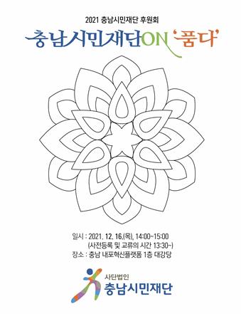 사단법인 충남시민재단이 12월 16일 오후 2시에 충남 내포혁신플랫폼에서 2021 충남시민재단 후원회"충남시민재단ON‘품다’"를 개최한다.