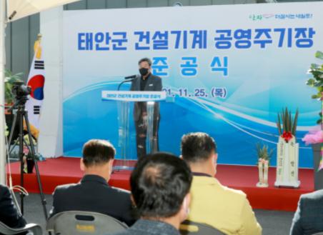 태안군이 지난 8월 군민에 개방된 태안군 건설기계 공영주기장에 대한 준공식을 갖고 불법주기(주차) 문제 해소를 위한 힘찬 발걸음을 내디뎠다.