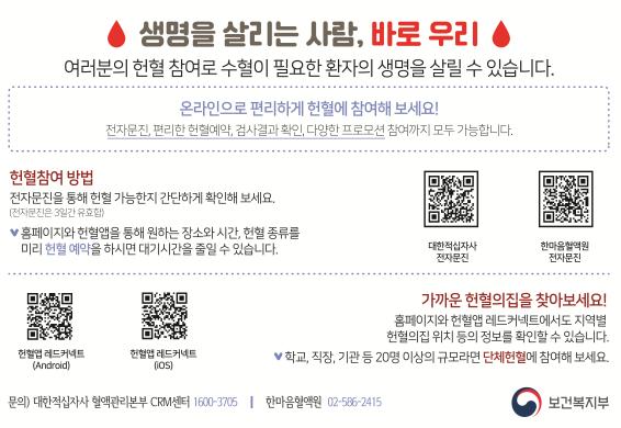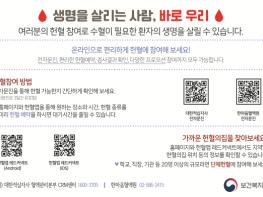아울러, 원하는 장소와 시간, 헌혈 종류를 미리 예약하면 대기시간을 줄이며 편리하게 헌혈에 참여할 수 있다.