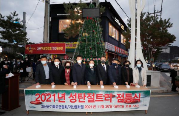 괴산문화원(원장 장재영)과 괴산군기독교연합회(회장 이종남)는 지난 26일 괴산읍 시계탑사거리에서 이차영 괴산군수, 신동운 괴산군의회 의장, 윤남진 충청북도도의원 등 내빈이 참석한 가운데 성탄트리 점등식을 가졌다.