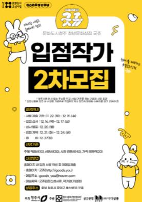 청주시와 청주시문화산업진흥재단 문화도시센터가 내달 15일까지, 청년문화상점 굿쥬에 입점할 2기 작가를 모집한다고 밝혔다.