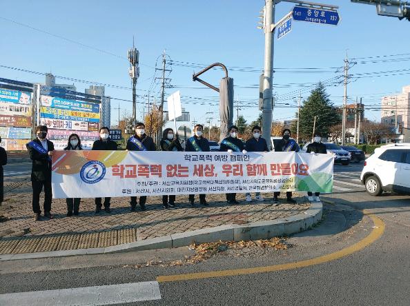 충청남도서산교육지원청은 11월 26일 아침 서산의료원 사거리에서 학교폭력예방캠페인을 실시하였다.