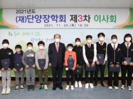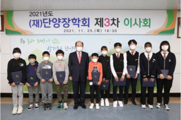 지난 25일에는 단양장학회 3차 이사회를 맞아 단양을 빛낸 예체능 우수학생들을 격려하기 위해 10명의 학생들에게 413만원의 장학금을 전달하기도 했다.