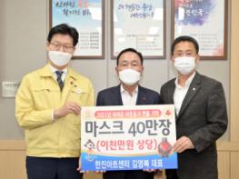 이날 기탁된 마스크 40만 장은 코로나19로 도움이 필요한 읍면동 어르신들과 장애인, 아동, 청소년 사회복지 관련 기관 및 단체에 기탁될 예정이다.
