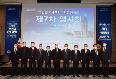 대한민국시도의회의장협의회는 지난 25일 서울 포시즌스호텔에서 열린 2021년 제7차 임시회에서 ‘국회지방의회협력회의의 구성 및 운영에 관한 법률 제정 촉구 건의안(가칭)’을 채택했다.
