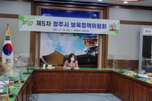 청주시가 지난 26일 2청사 소회의실에서 보육정책위원회 7명이 참석한 가운데 ‘2021년 제5차 보육정책위원회’를 개최해 어린이집 변경인가와 설치기준에 대한 예외적 허용 등에 대해 심의·의결했다.
