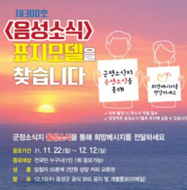충북 음성군이 전 국민을 대상으로 ‘음성소식’ 제300호 발행 기념 ‘SNS 희망메시지 이벤트’를 오는 12일까지 진행한다.