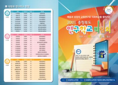 충청북도교육연구정보원은 도내 연구학교의 모범적인 교육사례를 공유하기 위해 11월 30일부터 12월 2일까지 3일간 충청북도교육연구정보원에서 '2021. 충청북도 연구학교 박람회'를 개최한다.