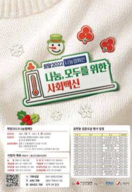 충남 서산시가 12월 1일부터 내년 1월 말까지 ‘나눔, 모두를 위한 사회백신’이라는 슬로건으로 ‘희망2022 나눔 캠페인’을 추진한다.
