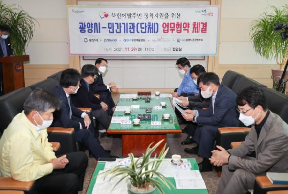 광양시는 지역 내 거주하는 북한이탈주민의 안정적인 정착지원을 위해 지역 내 4개 기관(단체)과 지난 29일 시청 접견실에서 업무협약을 체결했다.
