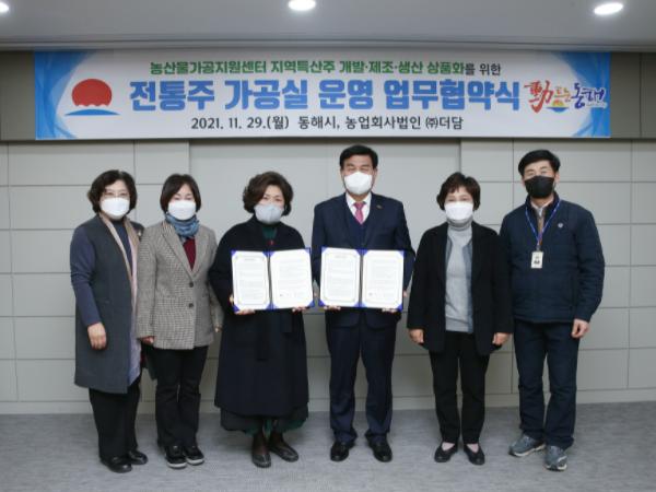 동해시는 지역의 농산물을 주원료로 한 지역특산주 개발을 위해 지난 29일 농업회사 ㈜더담(대표이사 이경희)와 업무협약을 체결했다고 밝혔다.