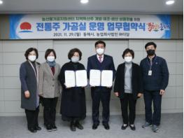 지난 11월 전통주 가공실 운영자로 선정된 ㈜더담과 이번 업무협약을 체결함으로써 본격적인 지역특산주 개발 및 발굴에 나설 계획이다.