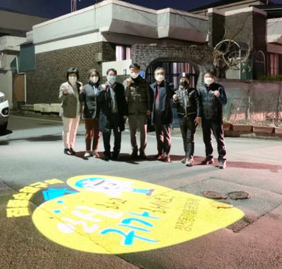 청전동마을공동체위원회에서는 어두운 밤길에 귀가하는 주민들의 안전을 지키기 위해 ‘셉테드(CPTED, 범죄예방도시환경설계)’ 기법이 적용된 로고젝터를 설치했다고 밝혔다.